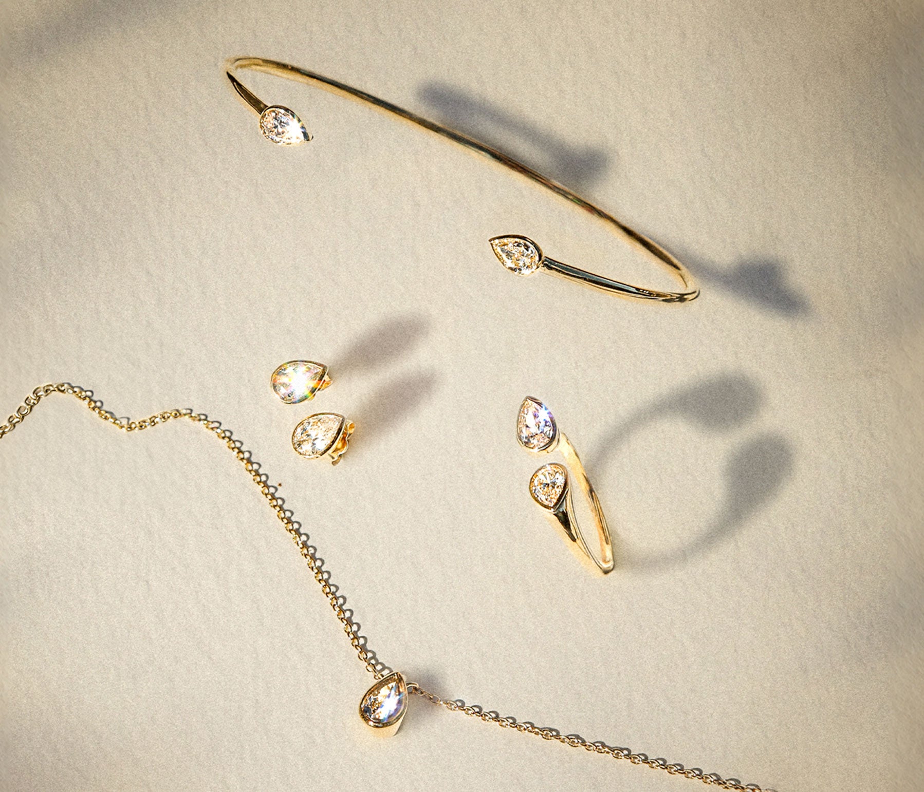 The elusive pear diamond is one of life's true luxuries, the ultimated keepsake and symbol of forever love. Each diamond is cut and set by hand, each more special than the next, each unique due to the variations in the cutting process. Only 5% of diamonds are pear-shaped, making them as rare as the woman who wears one.