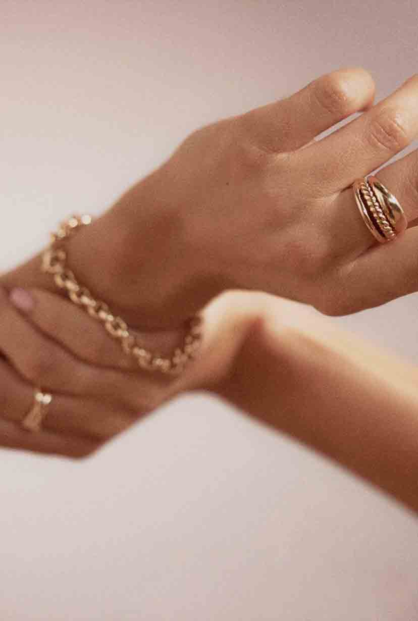 While our intention is that you never have to take our jewelry off, to preserve the hand-polished luster of your gold jewelry, we recommend that you avoid exposure to household bleach and other cleaning products, which may cause gold to discolor and possibly disintegrate.
