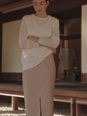 - 앞중심 솔기 디테일과 오픈 슬릿