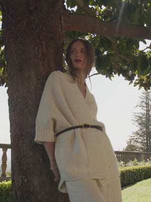 An effortless addition to your wardrobe, the Dante Shrug combines luxurious texture with everyday versatility. Its oversized fit creates a chic, relaxed silhouette perfect for layering year-round. Finished with slim fitting, ribbed cuffs, a wide ribbed placket and signature outside seam.