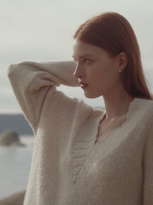 Our feminine Emme V Neck Sweater is the epitome of simply luxury. In a relaxed fit, this perfect v neck features a wide ribbed trim neckline, ribbed detailing at the side seams and ribbed cuffs and hem. In a custom hue, this v neck sweater is the one you will want to get cozy in every day.